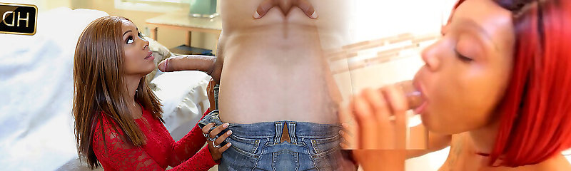 Natural pigtailed black head Timea Bella gargles dick and gets poked in sideways position