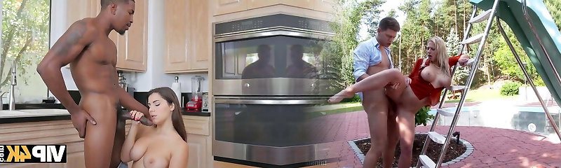 VIP4K. Sexy black-haired seduces black plumber