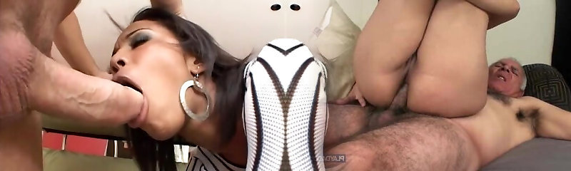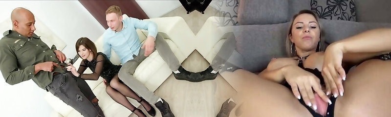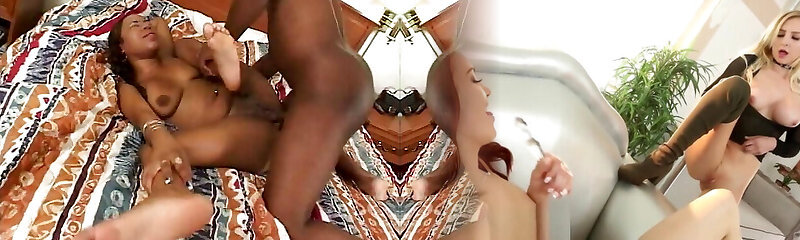 Amorous trio with Skyy Black a slut with massive globes and brunette loves to be satisfied in the pussy by two black cocks
