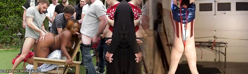 Black Bdsm Marionette With Bigtits Tied In Trio