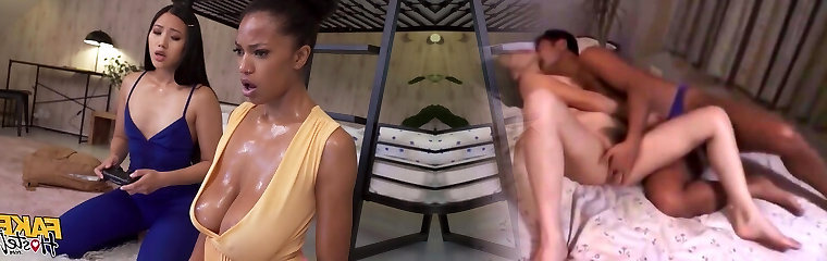 Ebony Lesbians Bring A Petite White Teen Into Their Bedroom