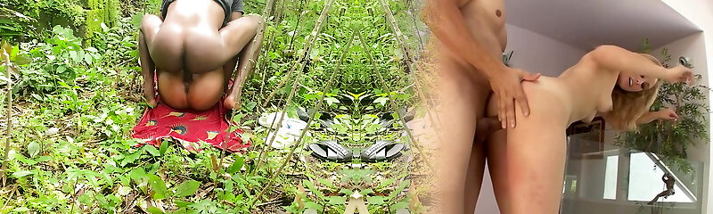 Chubby Ebony BBC fucked in the garden and cums multiple times