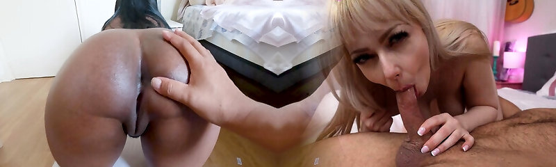Big Black stud seducing a bony white blonde for deepthroat and sex