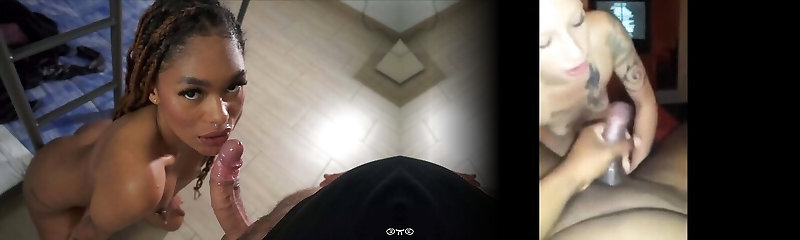 Slut sucking a cock, while jiggling her ample black ass, imagining another cock fucking her asshole