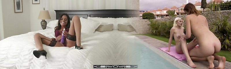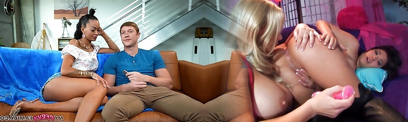 Amazing dark-hued milf with a perfect body tries a white cock of her stepson and really enjoys that