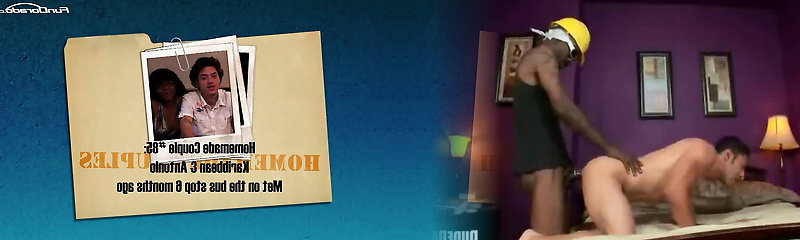 Watch the black guy bend over the good-sized chick and fuck her from behind