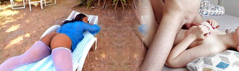 Brunette teen 22 Jahre fickt Big Black Cock am Pool und wird vielleicht erwischt