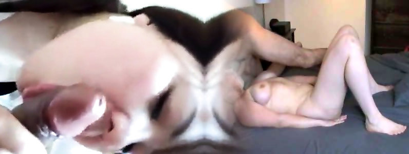 Chinese woman fellates a furry salami and gulps his blast