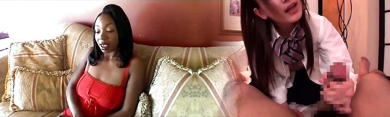 disrespectful black gives Femdom handjob too big white cock