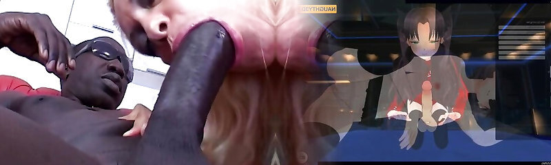 Hot plumpy slut with a fat backside tries to handle immensely big black dick in her mouth and pussy