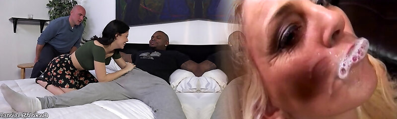 Vivacious brown-haired gets pounded by a yam-sized black cock as cuckold hubby watches