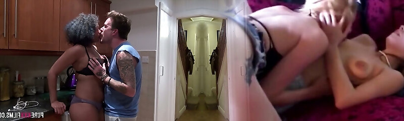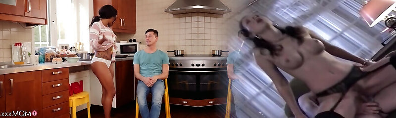 Ebony ambling around the house in underpants makes stepfather go for taboo sex
