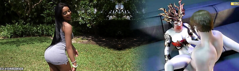 Pursuajon black beauty has a bubble backside that dances, and Hypnotizes Byron Long's monster phat black cock