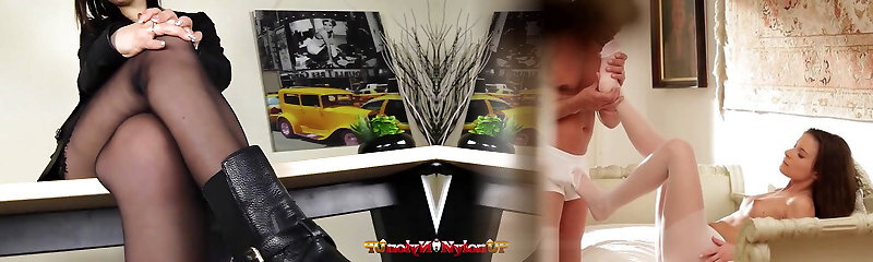 Incredible Feetjob in Black Stockings from a Friend's Wife