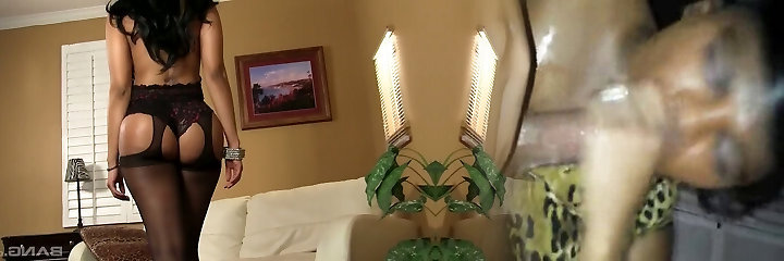 Dressed in sexy black lingerie Julia Ann is hammered doggy indeed hard