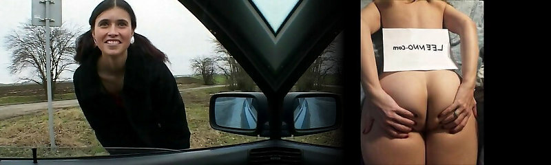 Anhalterin zeigt ihre Titten und Honeypot und pinkelt