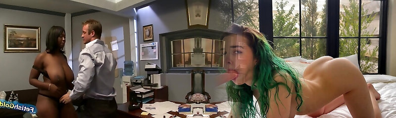 Ebony With Natural Big Bra-stuffers Gets Her Beaver Rammed By Muscular Guy In The Office