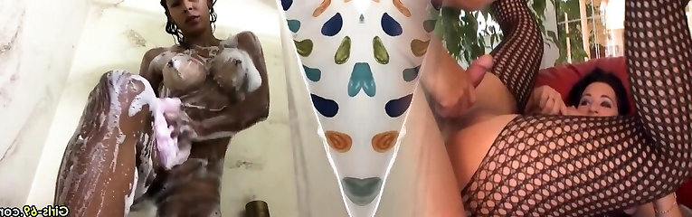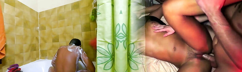 Latina Kelly Oliveira takes shower before sex with fat Ebony Cock