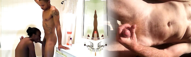 Curvy Bosomy Ebony MILF Loves Her Neighbor's Young BWC In the Bathroom & Gets Caught By Her Hubby