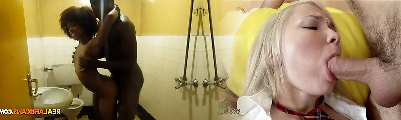 Nina Rae visits a public bathroom, and completes up giving Anonymous big black trunk blowjob in gloryhole Sledge Hammer.
