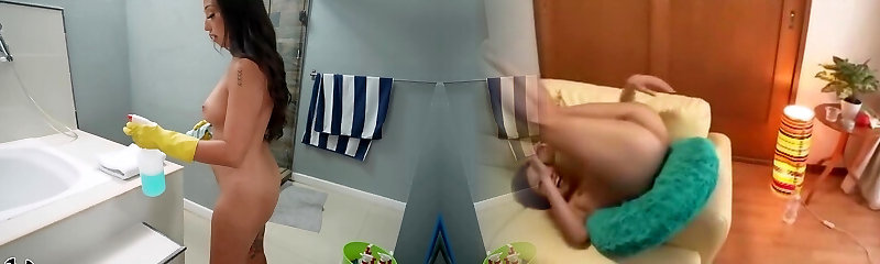 Big black titties maid went from blistering her bathroom floor to fucking her tight pussy with dildo