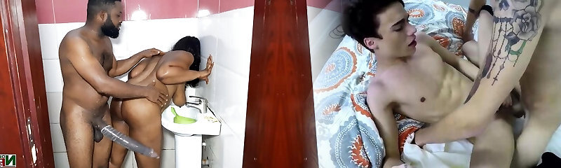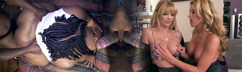 MILF Ebony plows her blonde stepdaughter's boyfriend and finishes up having a creampie three way! Carla Morelli and Naty Delgado