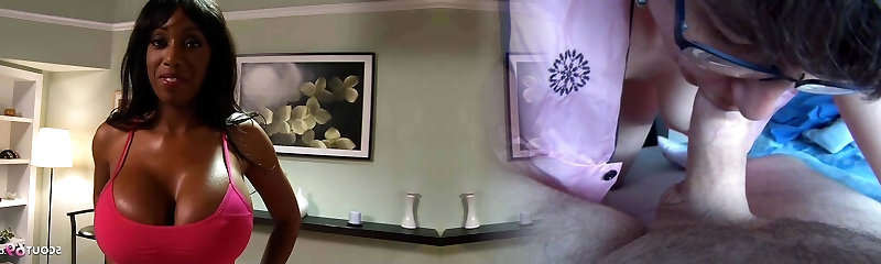 Huge Busty Black Mom Sucking and Pulverizing White Cock