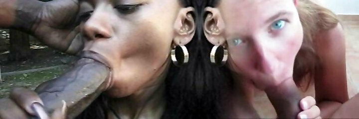 Hot ebony babes deep throating off the manager