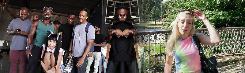 She surrounded by a few black penises and screams with joy when they penetrate all her fuck-holes simultaneously