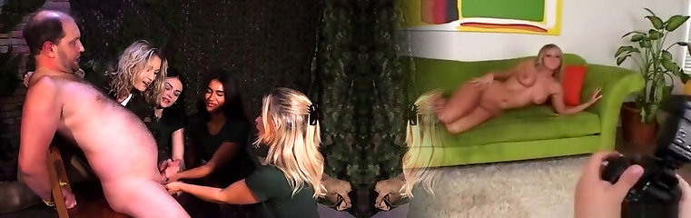 CFNM Ebony babe fap cock in group HJ with British ladies