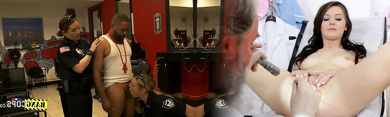 Caucasian police ladies humps black scofflaw in three way