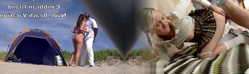 Voyeur cuck watches mature wife milking big ebony cock on nude beach
