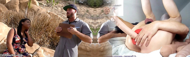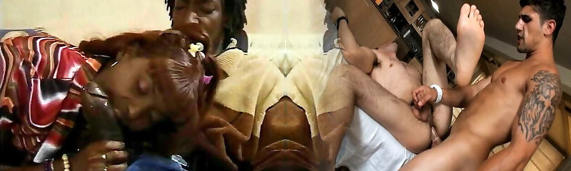 Strapon bangs her pussy as a white man sausage bangs her black mouth