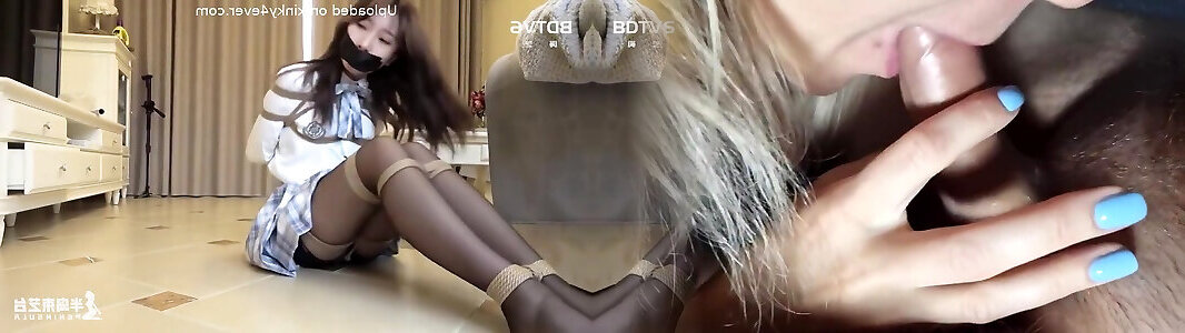Chinese girls wear white socks with two black bars.Man tickle her soles.