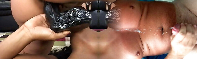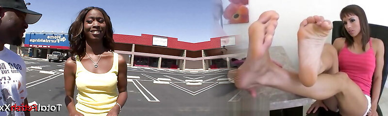Foot massage with lube, milk and meaty black butt plug