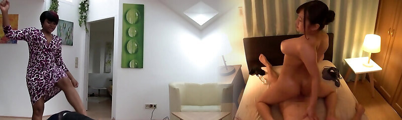 Black Asian hottie gives an extraordinaire reverse footjob to a strong hard dick