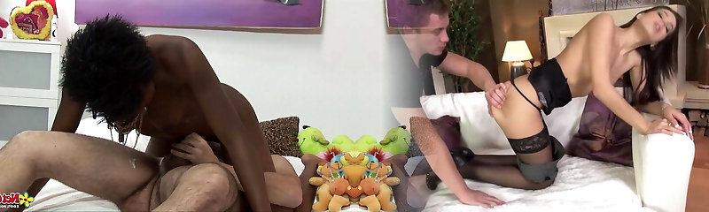 A young black doll on a white dick