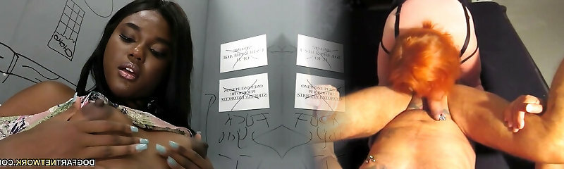 Jummy young white redhead chick receives a big black weenie in the gloryhole