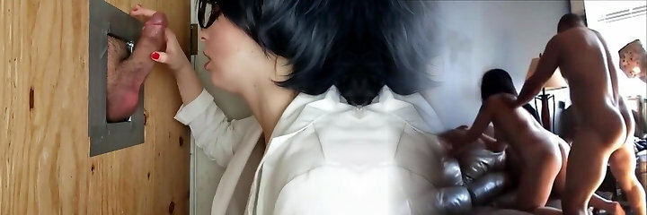 Gloryhole hoe sucks enormous black cocks