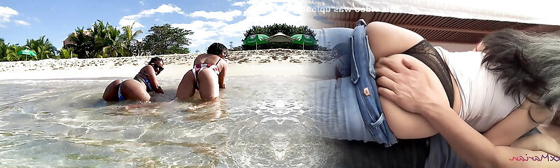 Khalessi 69 and Ebony Lesbian Woman Labia Licking, Masturbation and Hot Tribbing Pussy Riding on Puss After Beach