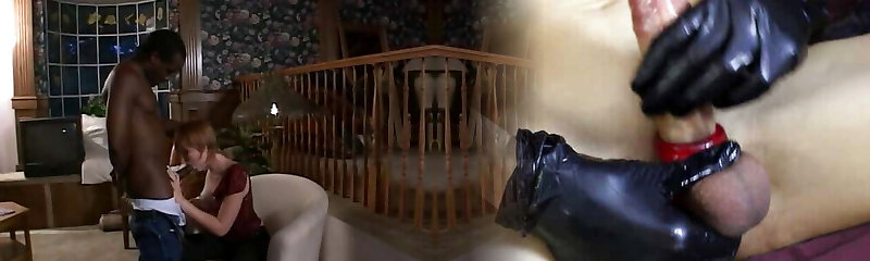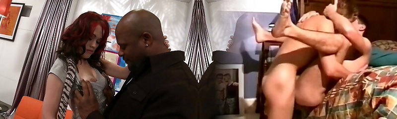 Sexy red head gets her clean-shaven pussy licked by dark-hued stud