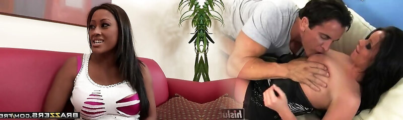 Ebony chick with meaty greased up boobs gets pounded by White dude