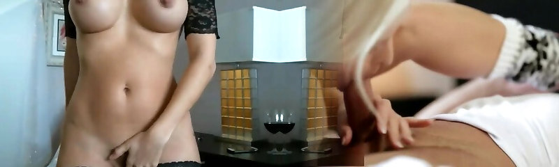 Blond honey with huge tits in black lingerie plays on webcam