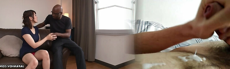 Nerdy bald black stud likes cute Japanese woman Tomoka Sakurai flashing her cunt