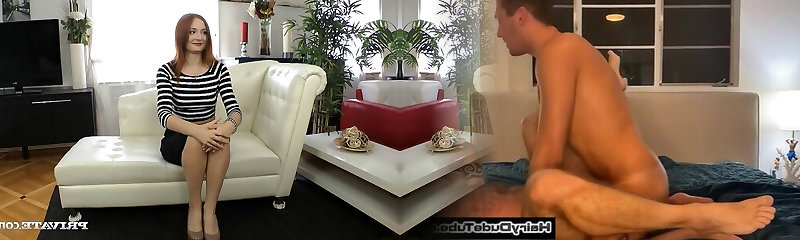 Redhead Barbara Babeurre pulverizes Black dude on a sofa