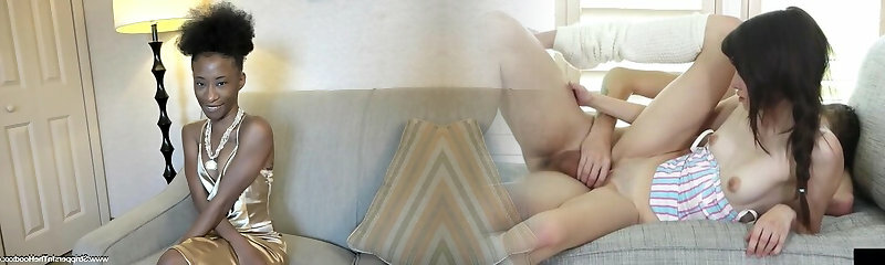 A Few ebony guys fuck mouth of small tittied and blind folded teen